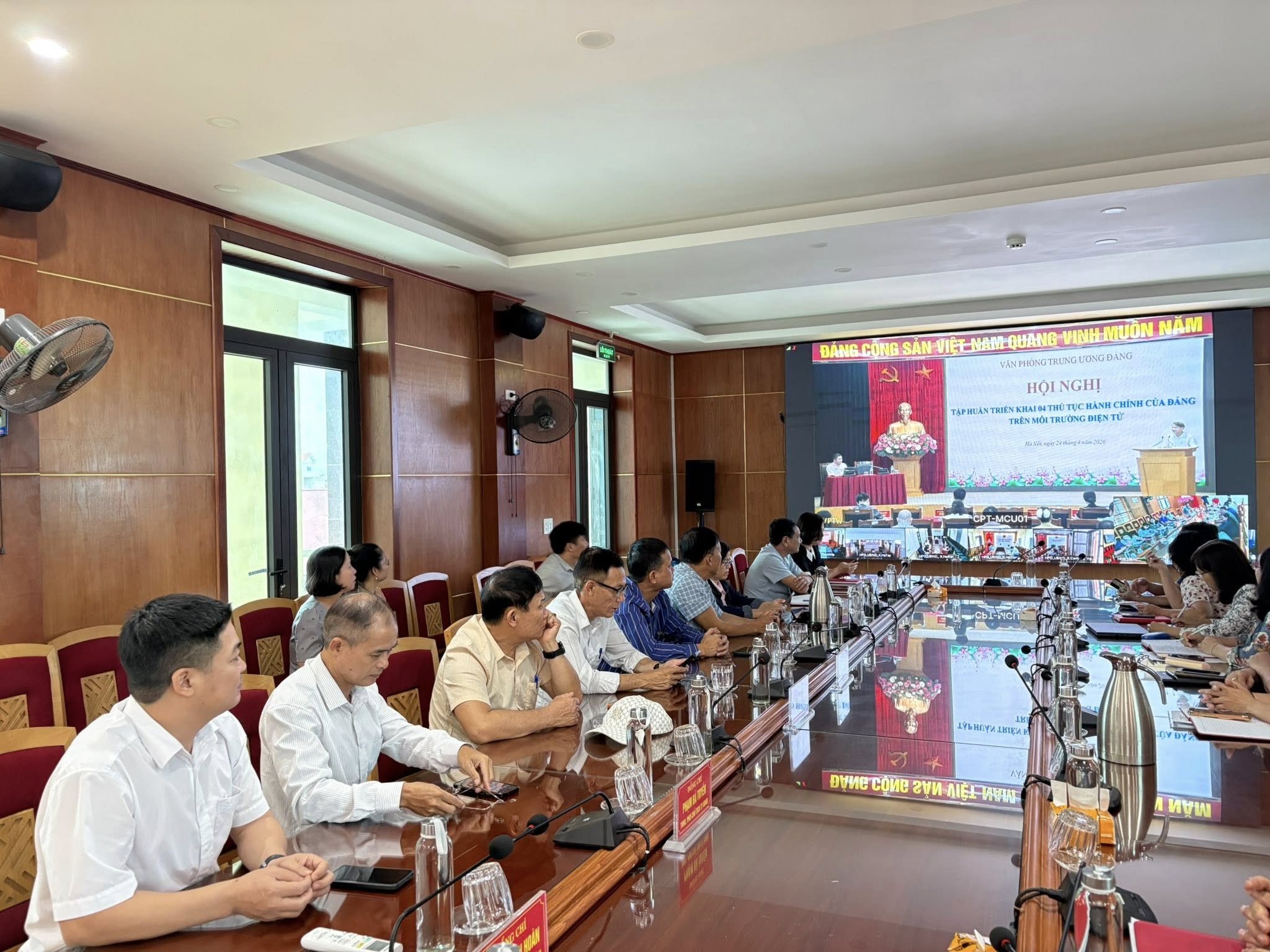 Tại Hội nghị, các đại biểu được quán triệt, giới thiệu tổng quan về hệ thống thủ tục hành chính của Đảng; nội dung, yêu cầu và quy trình thực hiện thủ tục hành chính trên môi trường điện tử theo Quy định số 338-QĐ/TW ngày 9/7/2025 của Ban Bí thư và Hướng dẫn số 42-HD/VPTW ngày 7/11/2025 của Văn phòng Trung ương Đảng; Kế hoạch số 77-KH/VPTW ngày 11/4/2026 của Văn phòng Trung ương Đảng về tổ chức thực hiện thống nhất 4 thủ tục hành chính của Đảng trên phạm vi toàn quốc.