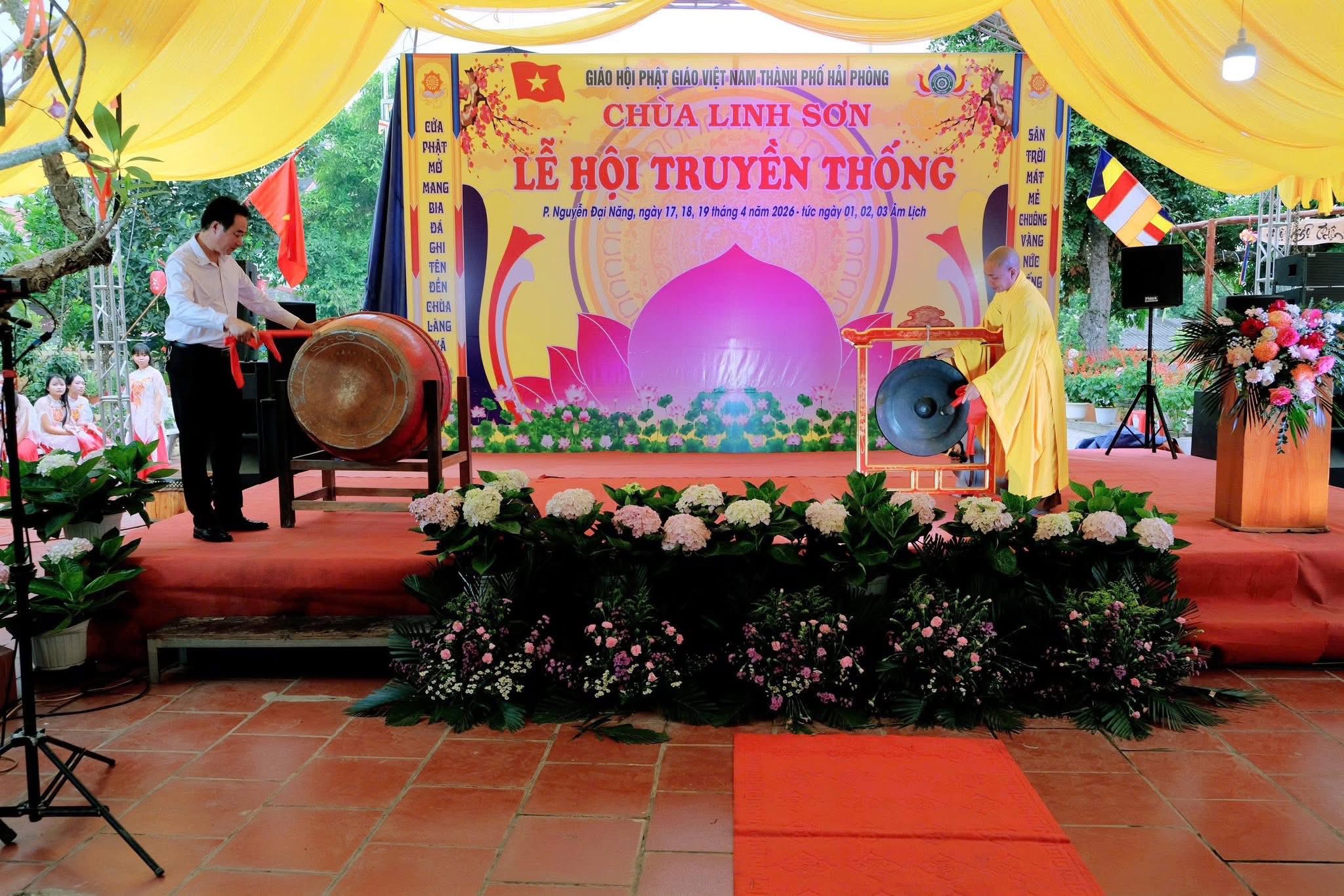 Tại buổi lễ, đồng chí Phạm Bá Tuyến – Ủy viên Ban Thường vụ Đảng ủy, Phó Chủ tịch UBND phường đã thực hiện nghi thức đánh trống khai hội, chính thức mở đầu cho chuỗi hoạt động của lễ hội chùa Linh Sơn năm 2026.