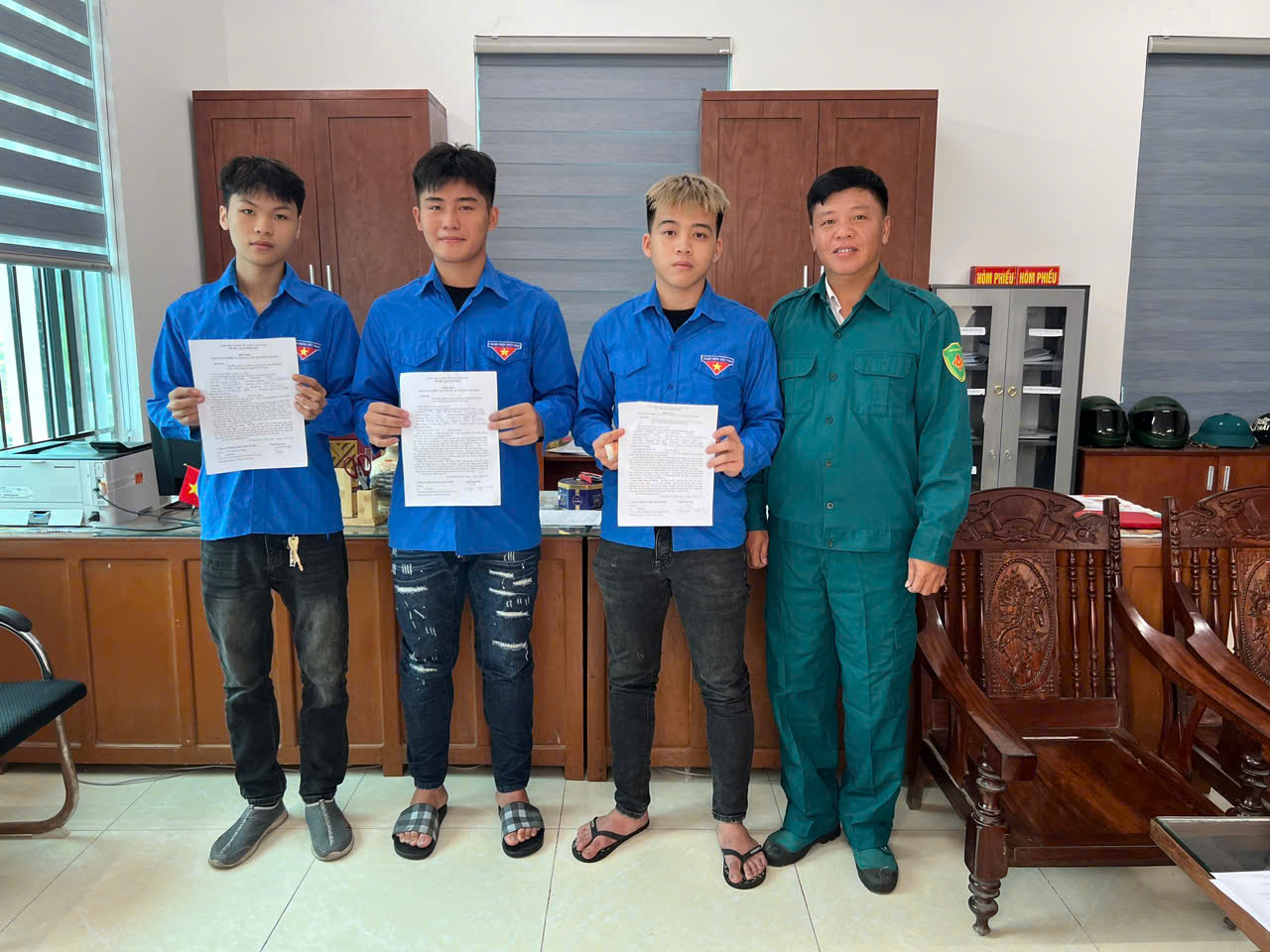Sáng ngày 25/9/2025, Tại Ban chỉ huy quân sự phường đã tiếp nhận 4 đơn tình nguyện tham gia nghĩa vụ quân sự của 04 công dân sinh năm 2008 trên địa bàn phường: Nguyễn Anh Tú - trú tại Tổ dân phố Tống Xá; Vũ Minh Quang - trú tại Tổ dân phố Nội; Bùi Mạnh Cường - trú tại Tổ dân phố Ngoại và Trương Công Minh- trú tại Tổ dân phố Nam Hà.